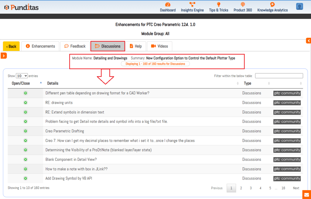 Punditas AI Advisor is a powerful platform as Users can access a single source of community chatter (discussions, opinions, suggestions) from both PTC and non-PTC sources. The image below shows discussions from PTC community related to “Detailed Drawings” enhancement in Creo 12.4.1.0