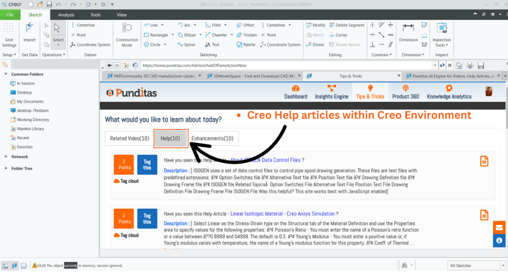 The Tips & Tricks module in Punditas AI puts expert guidance right where you’re already working. Whether you’re using Creo Parametric, ThingWorx, SolidWorks, Onshape, or Windchill, you’ll find current, actionable insights waiting in the Tips & Tricks module.
