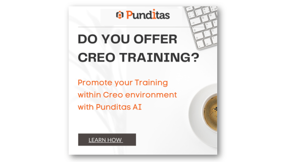 Promote your Training within Creo environment with Punditas AI Check out the Trial or Demo versions of Punditas AI Demo version of Punditas AI Signup for a Free Trial of Punditas AI For more information about Punditas AI Advisor, visit our website at Punditas AI or contact us at contact@punditas.com
