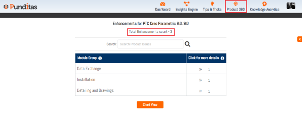 Punditas AI improves the user experience by providing an intuitive visual representation of Creo data with its cutting-edge chart view function. The relationship between modules and the number of enhancements is graphically represented for users by this dynamic chart. This chart view, in contrast to conventional text-based reports, offers a new level to data analysis,... Continue Reading →