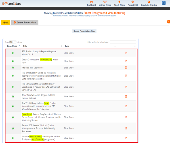 Want to explore PTC Customer Presentations? Search in Punditas AI