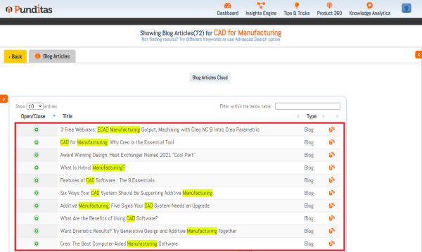 Punditas AI collects valuable Creo blogs from platforms like "PTC" , "PDSVISION" , "Rand 3D" , "EACPDS" , "NxRev" , "Concurrent Engineering" , "CAO 3D PRO" , "3HTi ", "4kside" , "TRISTAR" etc. and displays them in Blog Articles node based on the search input Following are the steps to explore Blog Articles in Punditas... Continue Reading →
