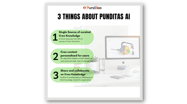1. Single Source Of Curated Creo Knowledge AI driven discovery from 100's of sources of Creo Information. 2. Creo Content Personalized for Users ML Algorithms display content based on Users personal style, area of Interests, etc. 3. Share and Collaborate on Creo Knowledge Punditas AI enables capture and sharing of tribal knowledge across the organization.... Continue Reading →